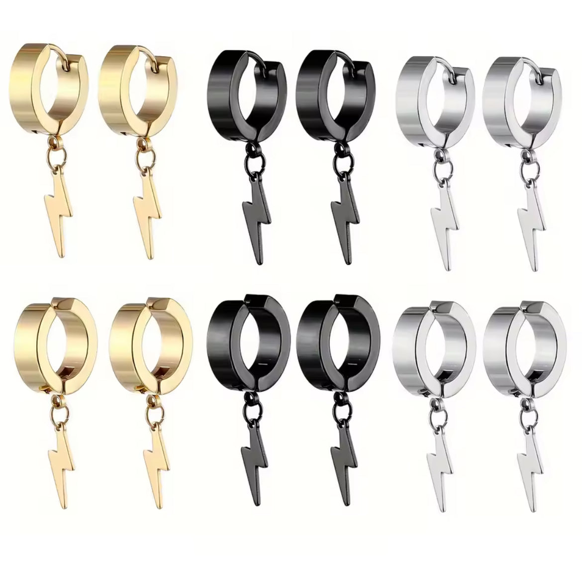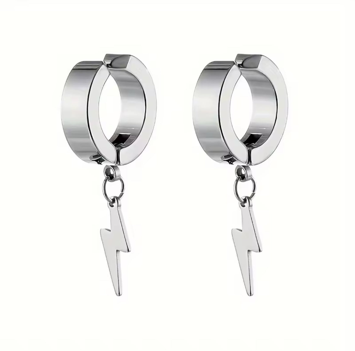 Aros con diseño de rayo, ideales para sumar un toque moderno y atrevido a tu estilo. Están fabricados en acero inoxidable, lo que los hace resistentes al agua, al uso diario y al desgaste. Disponibles en dos presentaciones según el color: