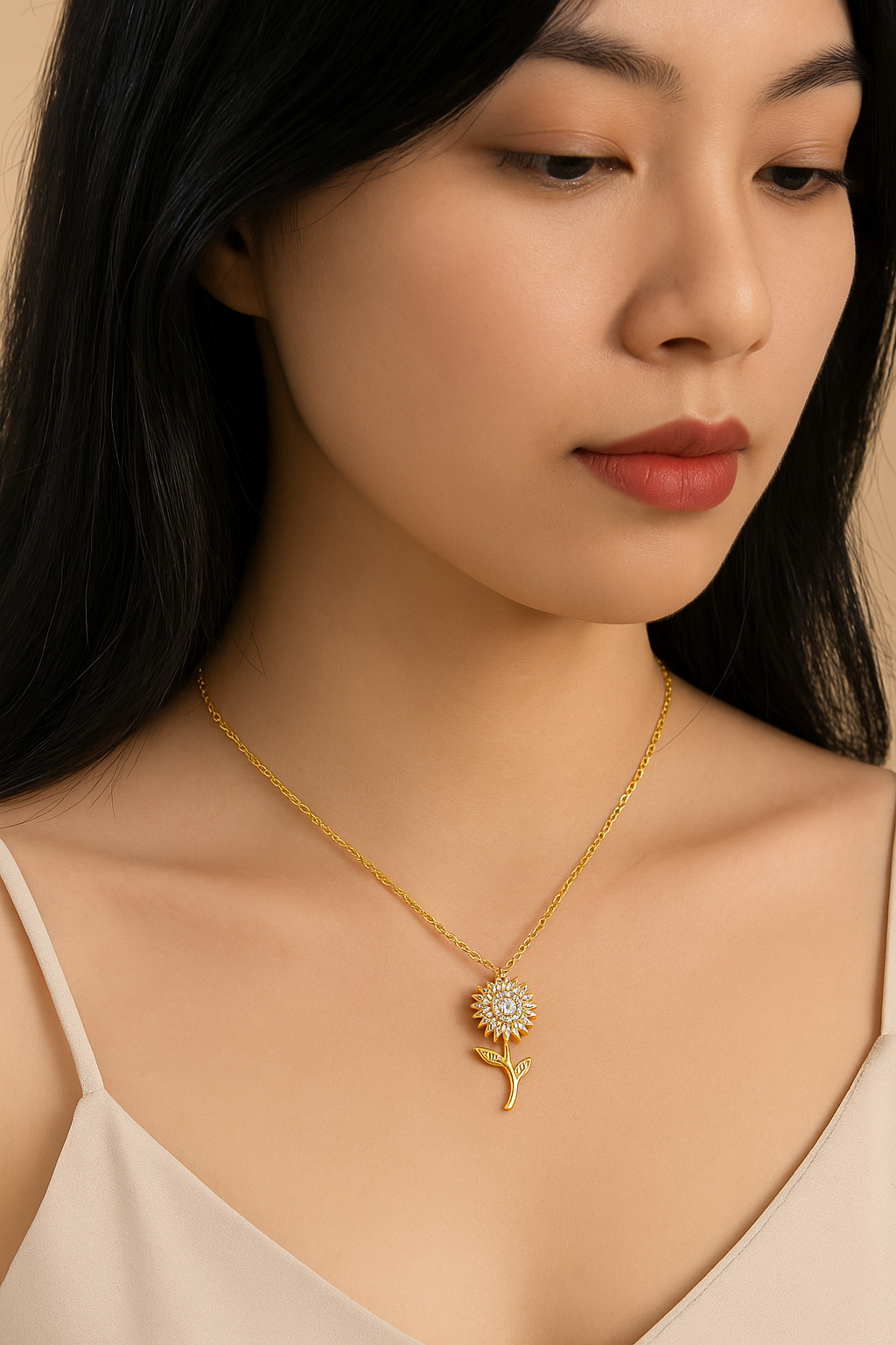 🌻 Collar Girasol Giratorio – Acero Inoxidable
