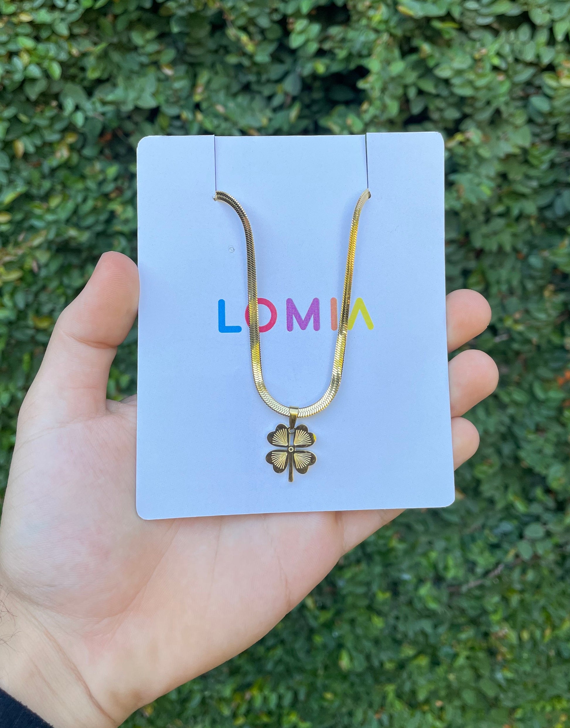 Collar femenino con dije de trébol dorado , símbolo de buena suerte y positividad. Fabricado en acero inoxidable y bañado en oro de 18K , combina durabilidad con un acabado brillante y delicado.