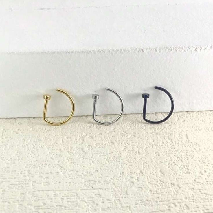 Piercings falsos para nariz, diseñados para colocarse a presión, sin necesidad de perforación. Fabricados en acero inoxidable, son resistentes al agua, no se oxidan y mantienen su color con el uso. Disponibles en tres tonos clásicos: dorado, plateado y negro, para combinar con cualquier estilo.